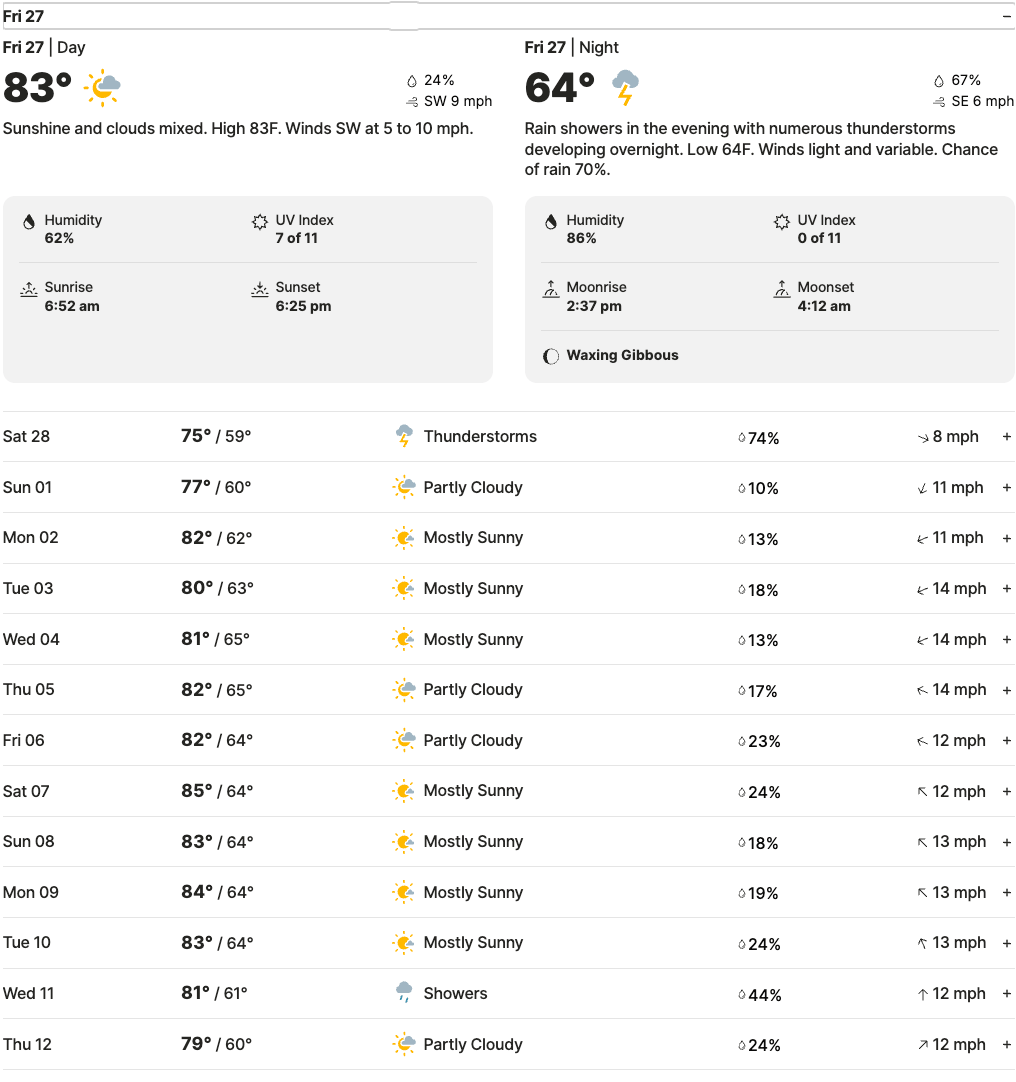 10 Day Weather Forecast for Lake Buena Vista, Florida